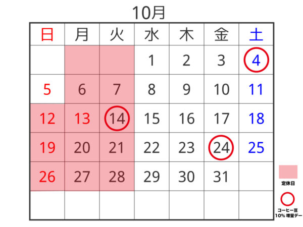 2025年 10月のお休み。