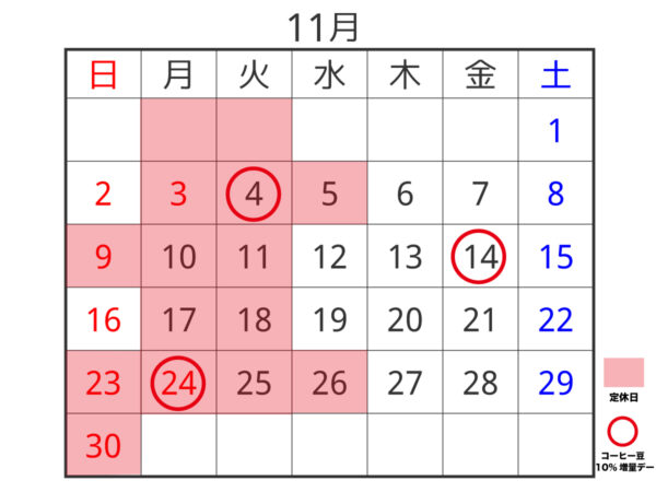 2025年 11月のお休み。