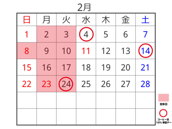 2026年 2月のお休み。