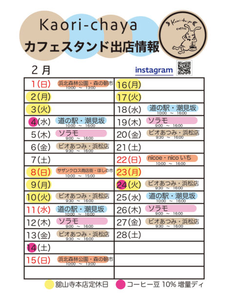 2/22 (日) *舘山寺本店は営業しています