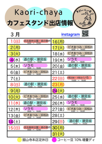 3/22 (日) *実店舗はお休み
